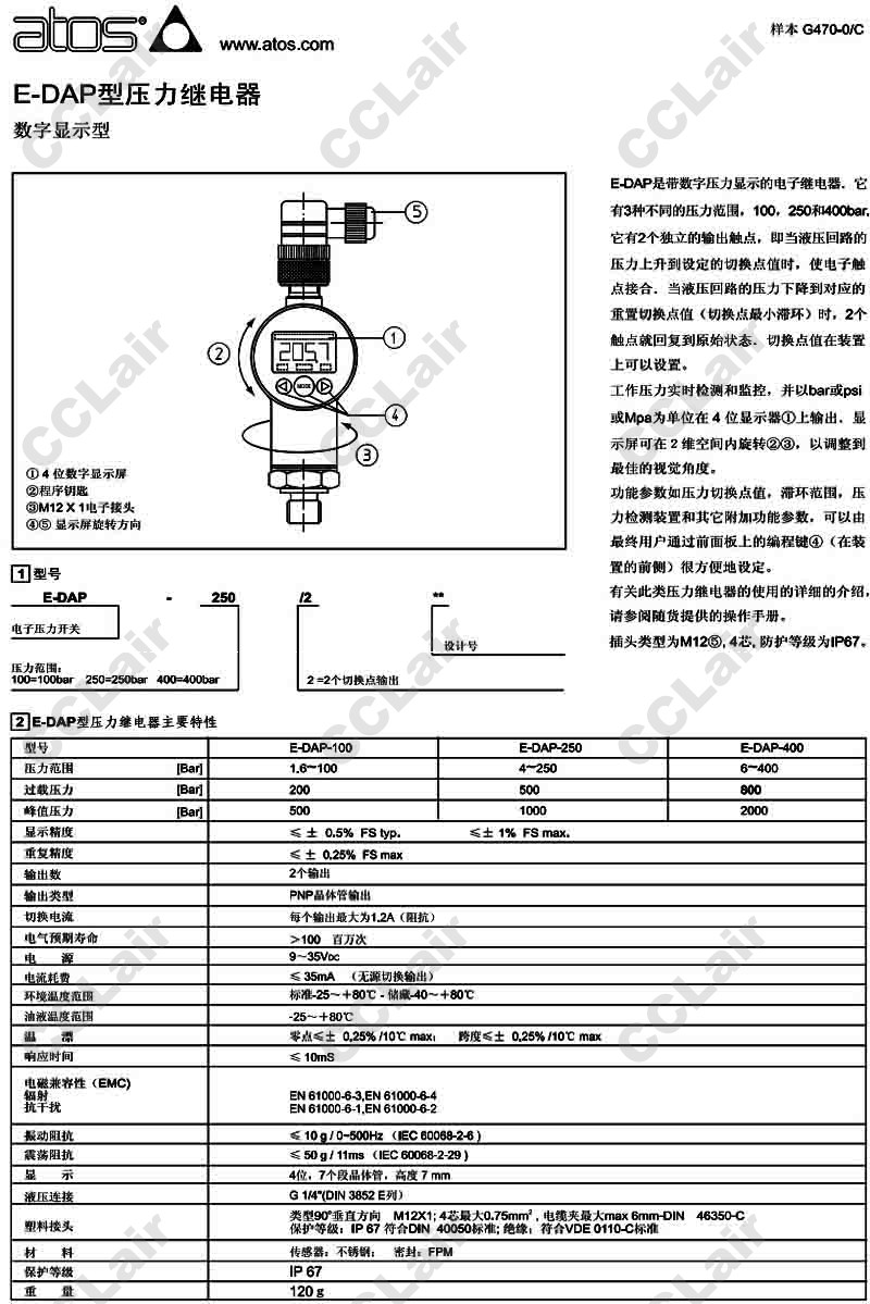E-DAP-100/2,E-DAP-250/2,E-DAP-400/2,阿托斯ATOS壓力繼電器