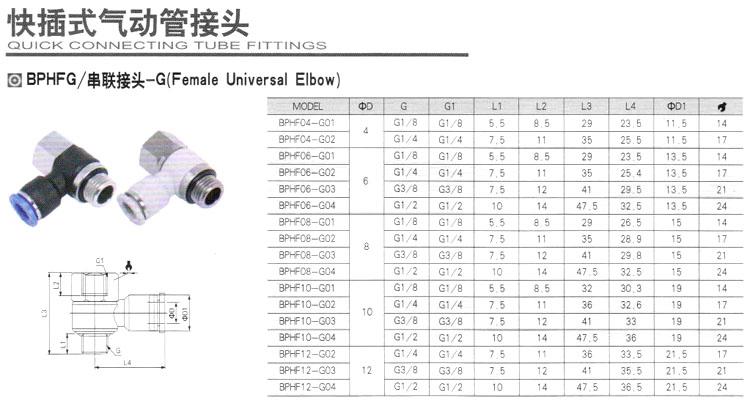 BPHF04-G01,BPHF06-G01,BPHF08-G01,BPHF10-G01,BPHF12-G02,BPHF04-G02,快插式氣動管接頭