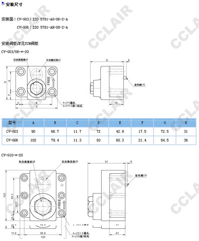 CV-G03,CV-G06,CV-G10,CV-G03-05-10,CV-G10-50-10,CV-G06-50-20,CV-G06-50-10,板式直角單向閥