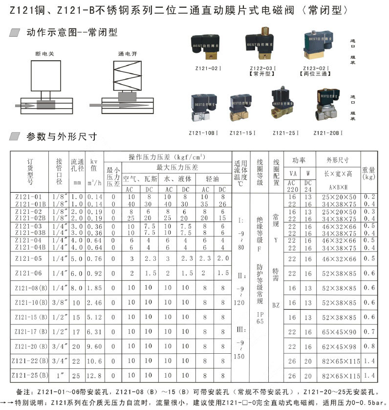 詳細信息 Z121-01,Z121-02,Z121-03,Z121-04,Z121-05,Z121-06,Z121-08,直動活塞式電磁閥