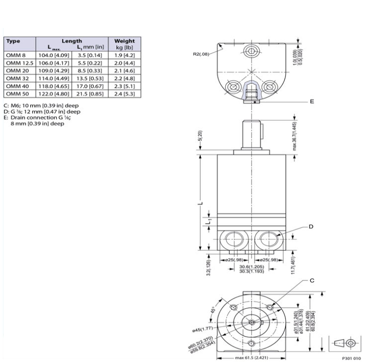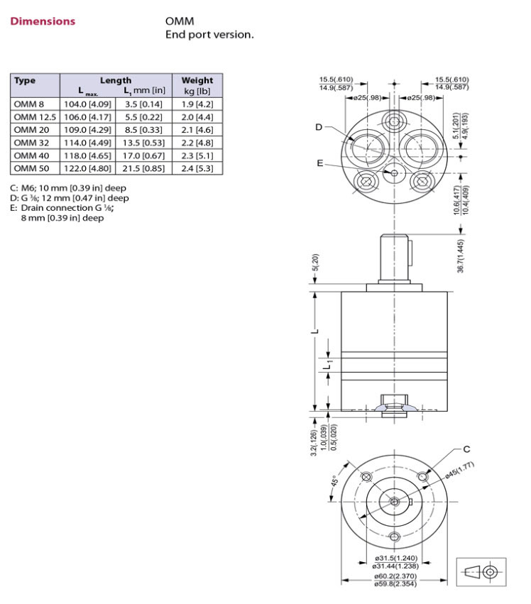 詳細信息 OMM-8,OMM-12.5,OMM-20,OMM-32,OMM-40,OMM-50,blince擺線液壓馬達