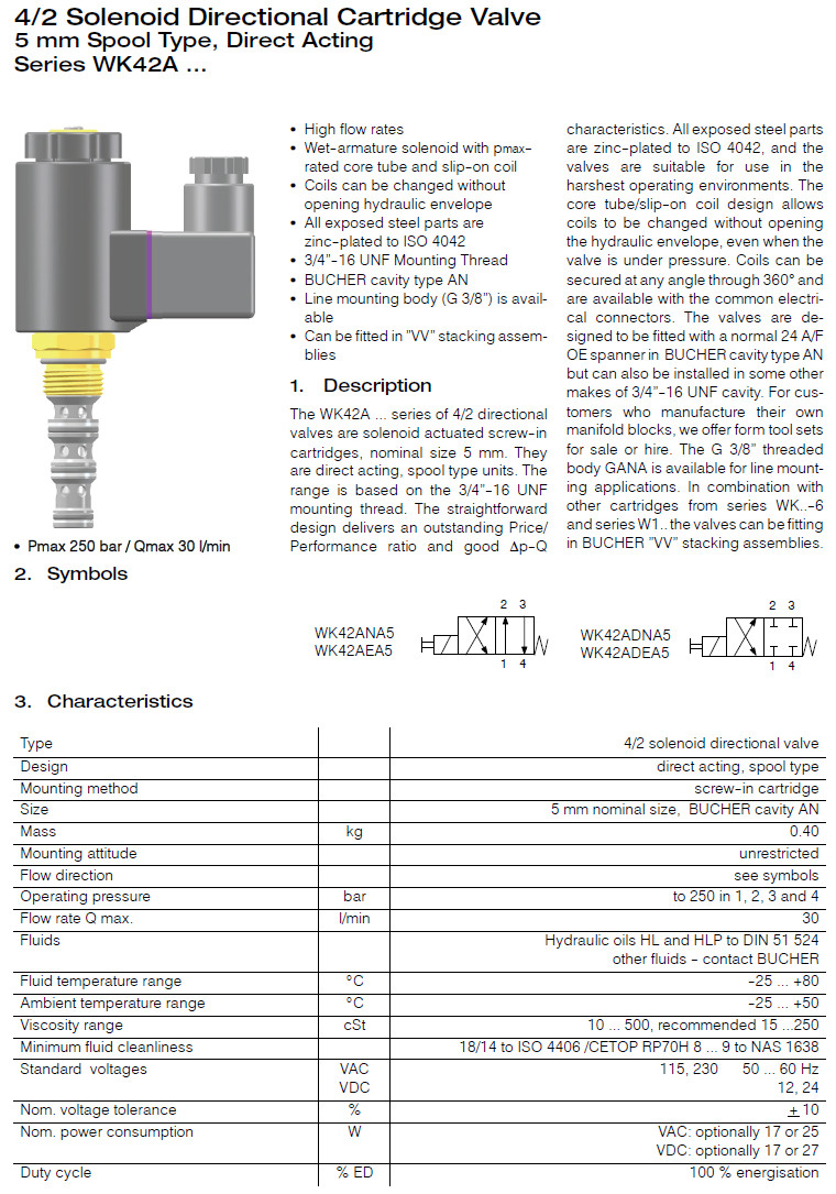 詳細(xì)信息 WK42ANA5-1,WK42ADNA5-1,WK42AEA5-1,WK42ADEA5-1,WK42ANA5V-1,WK42ADNA5V-1,Bucher方向閥