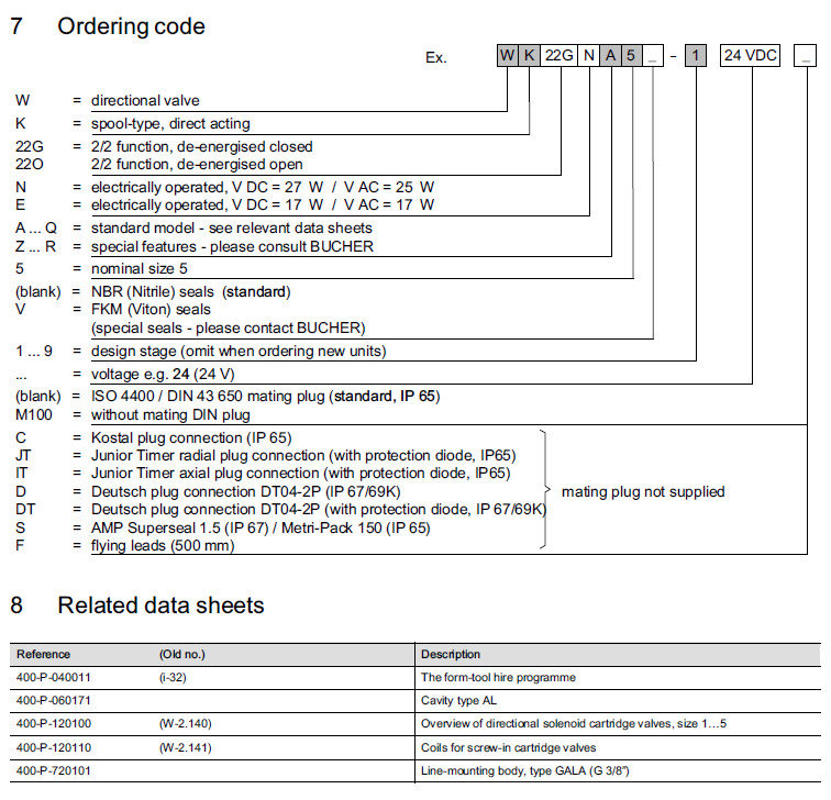詳細信息 WK22GNA5-1,WK22ONA5-1,WK22GEA5-1,WK22OEA5-1,WK22GNA5V-1,WK22ONA5V-1,Bucher方向閥
