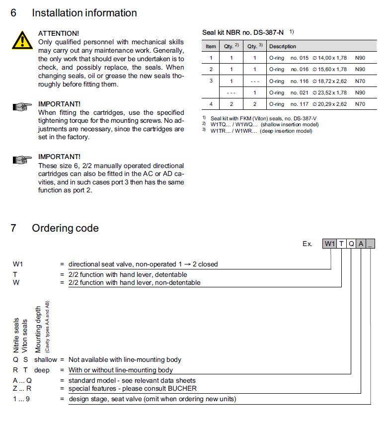 W1TQA1,W1WQA1,W1TRA1,W1WRA1,W1TSA1,W1WSA1,W1TTA1,W1WTA1,Bucher方向閥