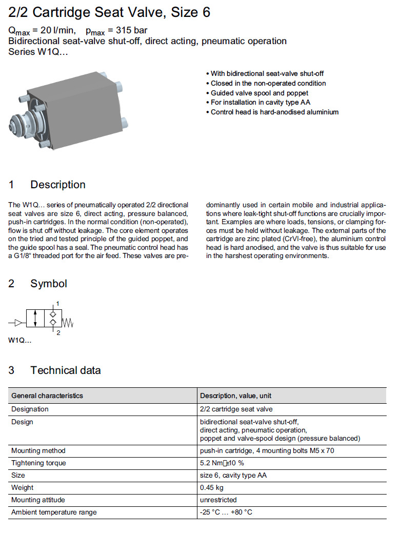 詳細(xì)信息 W1QQA1,W1QSA1,Bucher方向閥