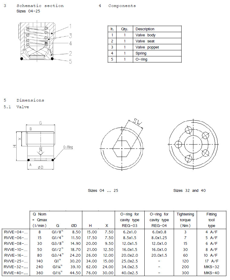 RVVE-G-04,RVVE-G-06,RVVE-G-10,RVVE-M-16,RVVE-M-25,RVVE-U-32,RVVE-U-40,Bucher預(yù)載止回閥