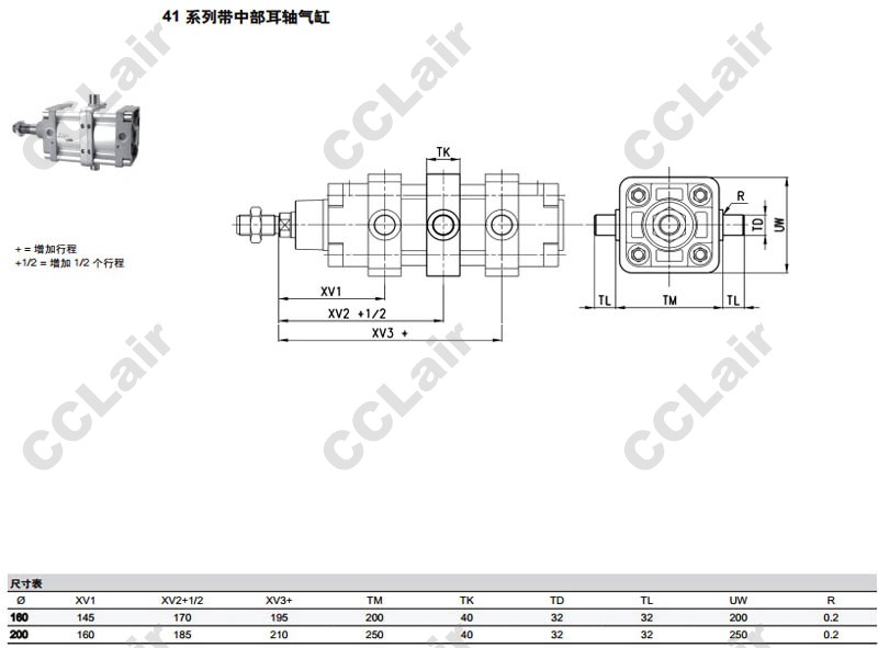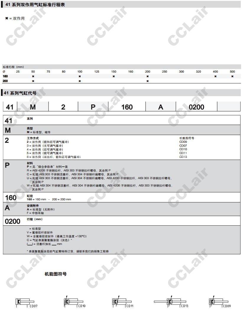 41M2P160A050,41M3P160A0100,41M2P200A0200,41M3P200F0400,41M4P160F0500,camozzi氣缸