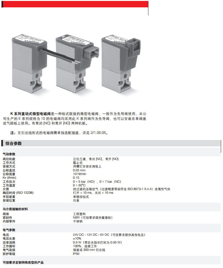 K000-003-K11,K001-023-KC2,K002-423-FH1,K000-303-FG2,K000-603-K22,camozzi直動式微型電磁閥