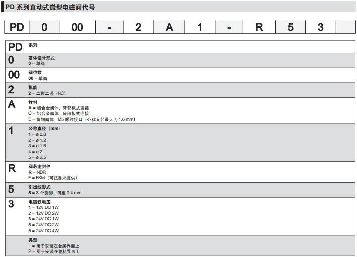 PD000-2A1-R51,PD000-2A5-F52,PD000-2E1-R53,PD000-2A2-R55,camozzi直動式微型電磁閥