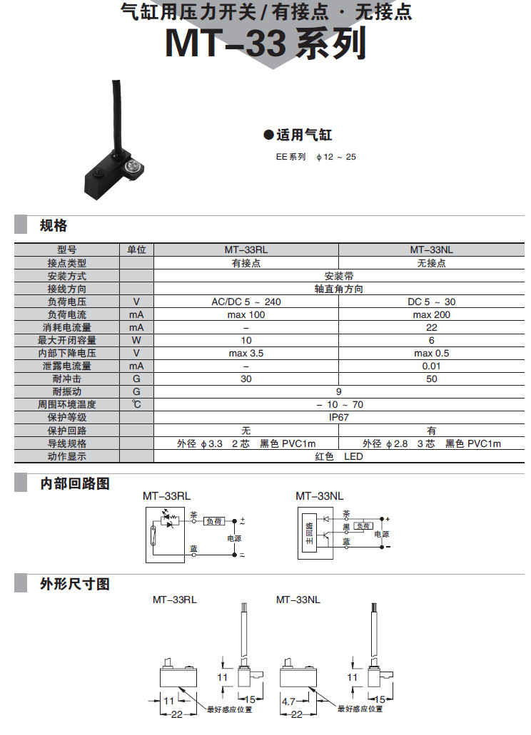 | 您當(dāng)前的位置:首頁(yè) » 產(chǎn)品&解決方案 » MT-33RL,MT-33NL,氣缸用壓力開(kāi)關(guān) MT-33RL,MT-33NL,氣缸用壓力開(kāi)關(guān)