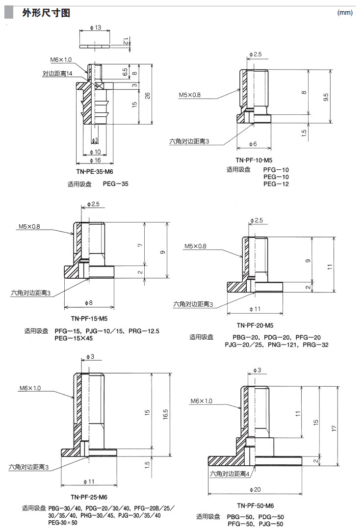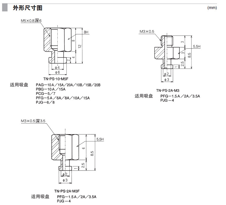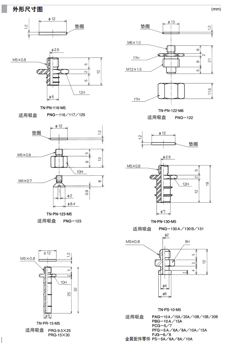 TN-PC,TN-PE,TN-PF,TN-PH,TN-PK,TN-PKM,TN-PN,TN-PR,止動(dòng)螺紋