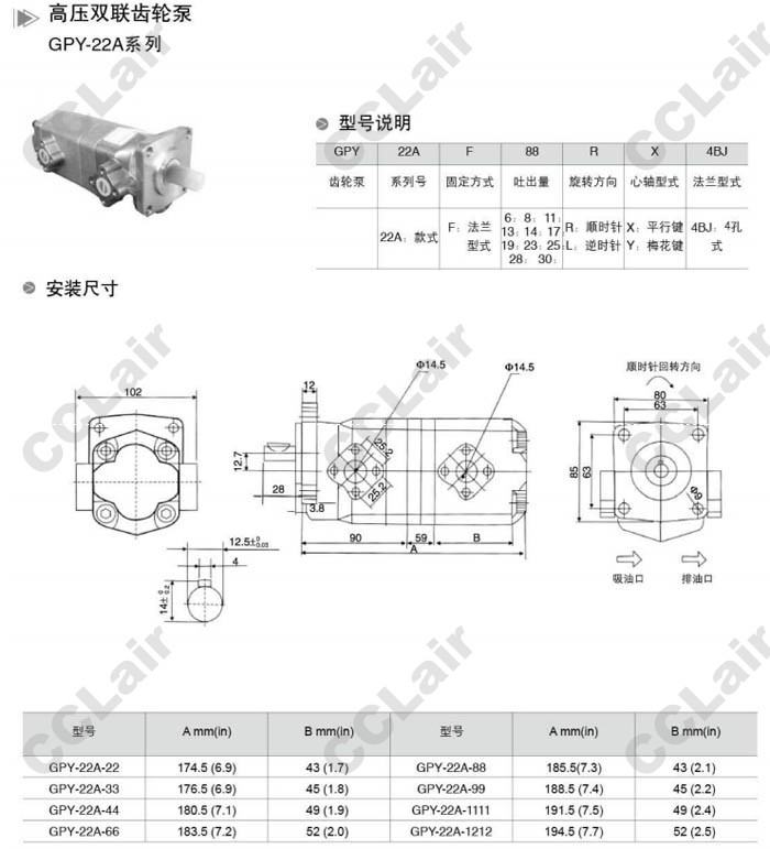 GPY-22A-22,GPY-22A-23,GPY-22A-44,GPY-22A-66,GPY-22A-88,GPY-22A-99,GPY-22A-1111,GPY-22A-1212,高壓雙聯(lián)齒輪泵,無錫昌林