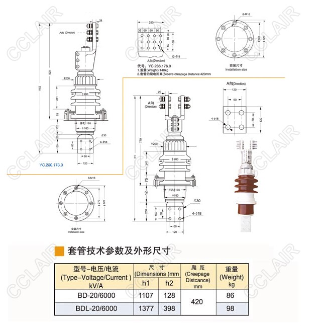 接線板、瓷件、導電桿和籌鋁合金法蘭組成。