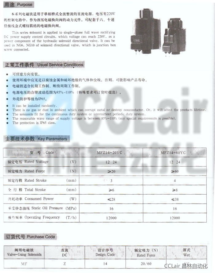 MFZ14-20YC,MFZ14-60YC,直流(接線盒式)濕式閥用電磁鐵,生產(chǎn)廠家,價格