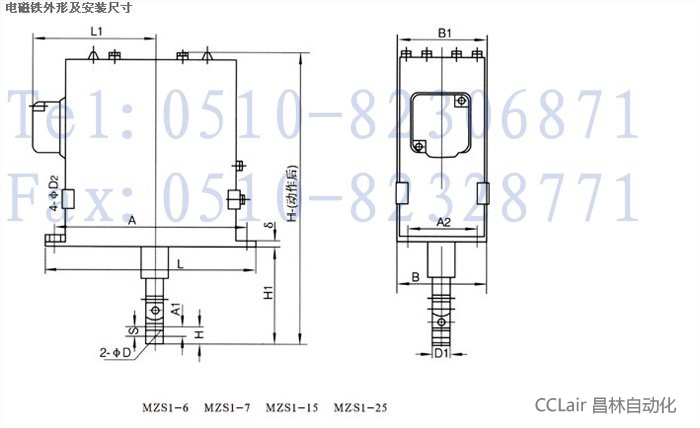 電磁鐵外形及安裝尺寸