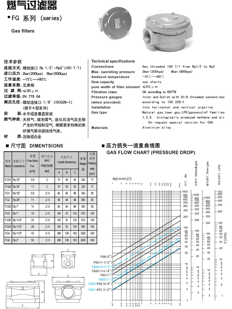 詳細(xì)信息 FGS1,FGS2,FG1,FG2,FGS3,FG3,FG35,FGS4,FG4,FG6,elektrogas燃?xì)膺^濾器