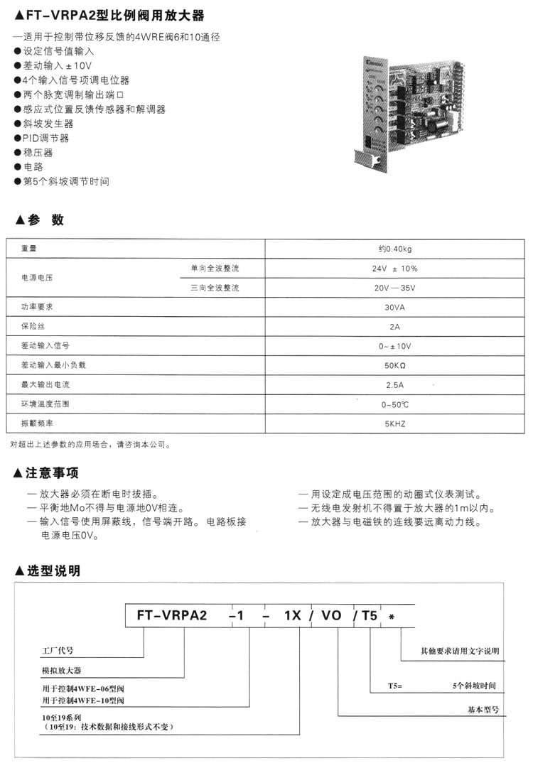 詳細信息  FT-VRPA2-1-1X/VO/T5,比例閥用放大器
