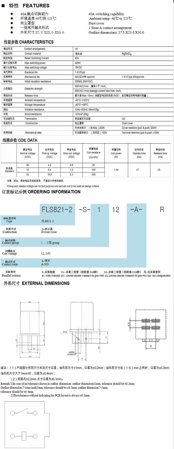 詳細(xì)信息 FLS821-2,汽車(chē)?yán)^電器