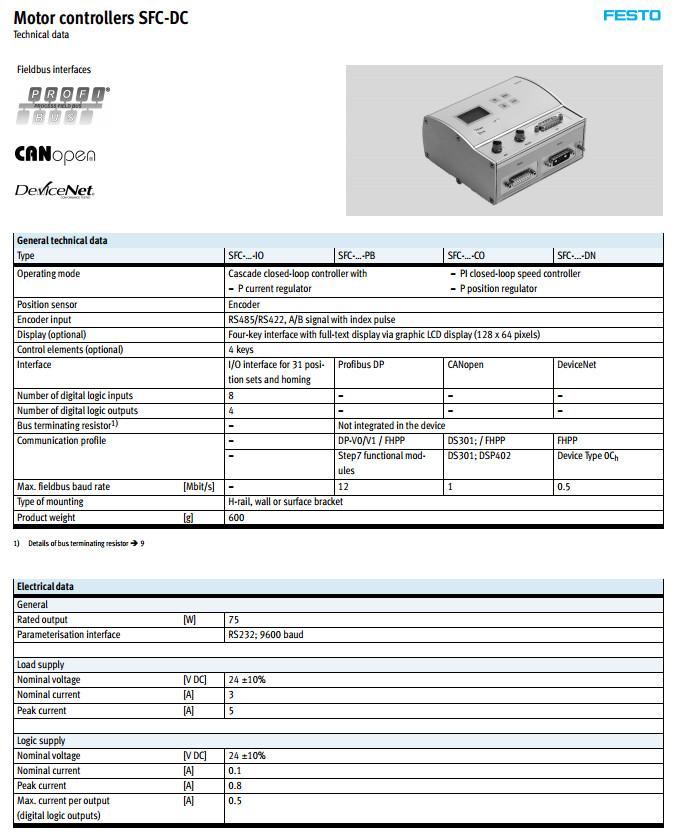 詳細信息  SFC-DC-VC-3-E-H0-IO,SFC-DC-VC-3-E-H2-PB,festo馬達控制器