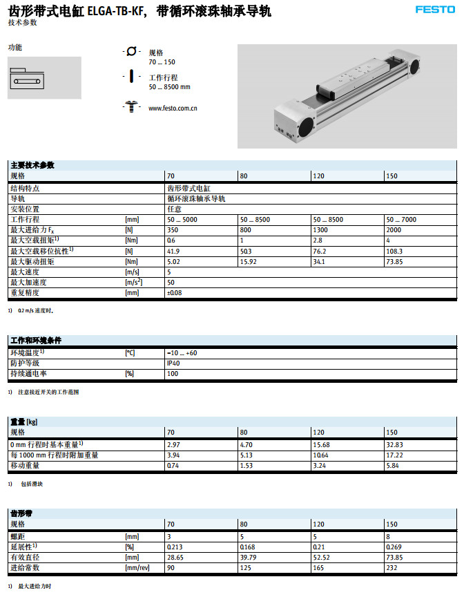 ELGA-TB-KF-70,ELGA-TB-KF-80,ELGA-TB-KF-120,ELGA-TB-KF-150,festo齒形帶式電缸