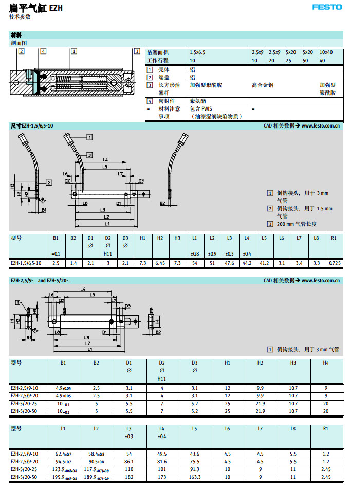 EZH-1.5*6.5-10,EZH-2.5*9-10,EZH-5*20-25,EZH-10*40-40,festo扁平氣缸