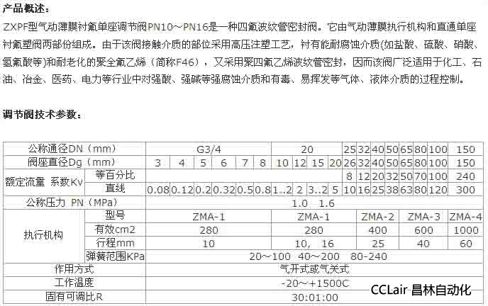 詳細(xì)信息 ZXPF-10,ZXPF-16,氣動(dòng)薄膜襯氟單座調(diào)節(jié)閥