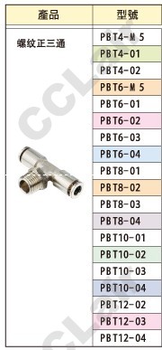 PBT4,PBT6,PBT8,PBT10,PBT12,PBT12-03,PBT10-04,PBT4-M5,PBT6-01,國(guó)鷹KUOIN螺紋正三通接頭
