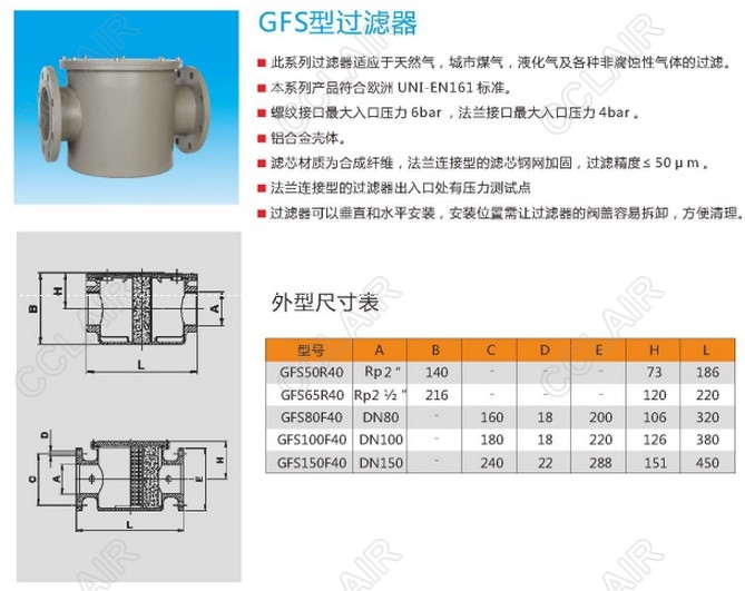 詳細(xì)信息 GFS50R40,GFS65R40,GF80F40,GFS100F40,GFS150F40,過(guò)濾器