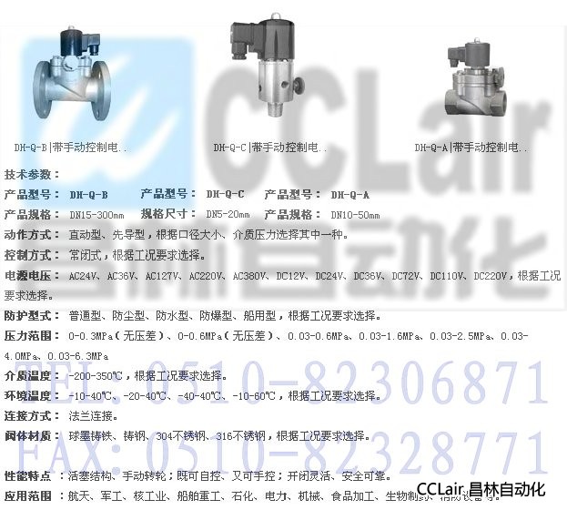 詳細(xì)信息 DH-Q-B15,DH-Q-B20,DH-Q-B25,DH-Q-B32,DH-Q-B40,DH-Q-B50,帶手動(dòng)控制電磁閥