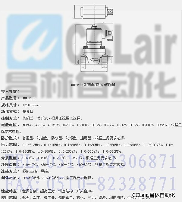 DH-P-B20,DH-P-B25,DH-P-B40,DH-P-B50,超高壓電磁閥