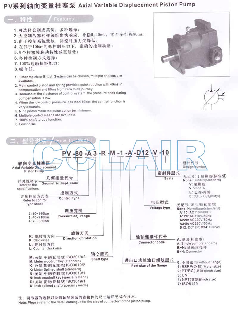 PV-16,PV-20,PV-23,PV-32,PV-40,PV-46,PV-16-A3-R-M-1-A-D12-V-10,PV-20-A3-R-M-1-A-D12-V-10,軸向變量柱塞泵