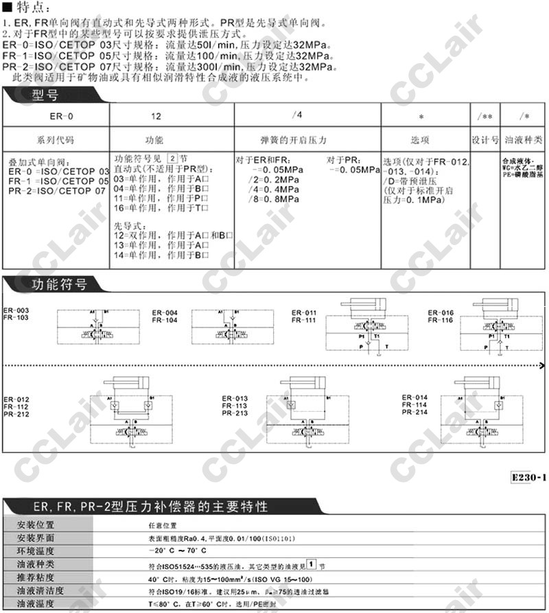 詳細信息  ER-003,ER-004,ER-011,ER-016,EFR-103,FR-104,FR-111,PR-216,PR-212,PR-213,PR-214,疊加式單向閥