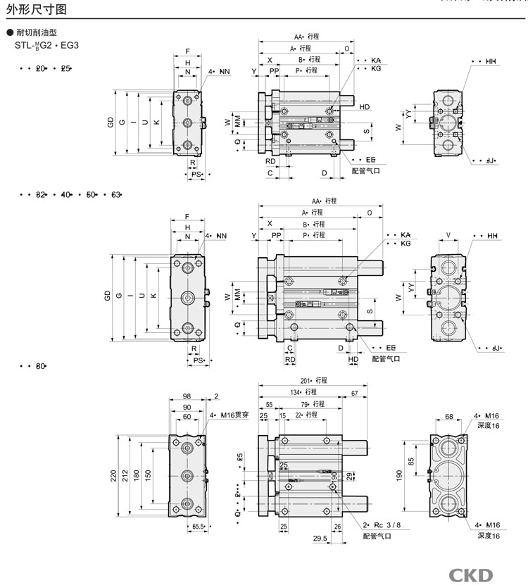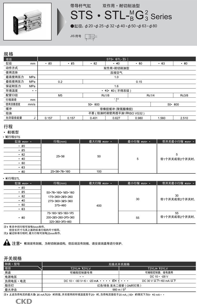STL-BG3-63-50,STL-BG3-63-75,STL-BG3-63-100,STL-BG3-63-125,STL-BG3-63-150,STL-BG3-63-175,STL-BG3-63-200,CKD帶導(dǎo)桿氣缸