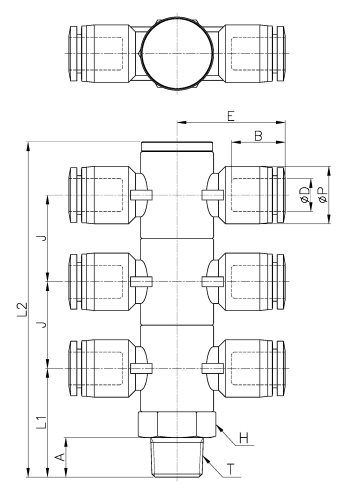| Model | ¢D | ¢P | T | L1 | L2 | E | A | B | J | H (Hex) | ORIFICE | WEIGHT(g) | BOX(EA) |