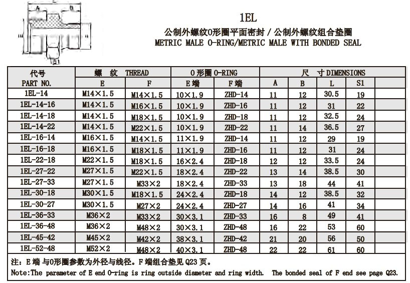 1EL-14-16,1EL-16-18,1EL-22-18,1EL-27-22,1EL-30-27,1EL-36-33,1EL-45-42,1EL-52-48,平面密封接頭