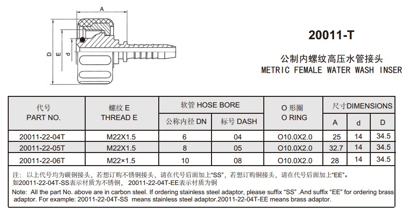您當(dāng)前的位置:首頁(yè) » 產(chǎn)品&解決方案 » 20011-22-04T,20011-22-05T,20011-22-06T,扣壓式軟管接頭