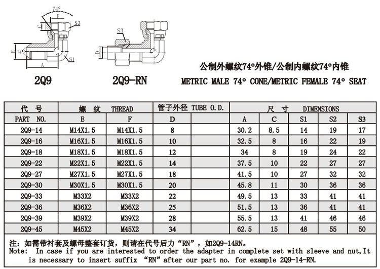 詳細(xì)信息 2Q9-14,2Q9-16,2Q9-18,2Q9-22,2Q9-24,2Q9-27,2Q9-30,2Q9-33,2Q9-36,2Q9-39,2Q9-45,錐面密封接頭