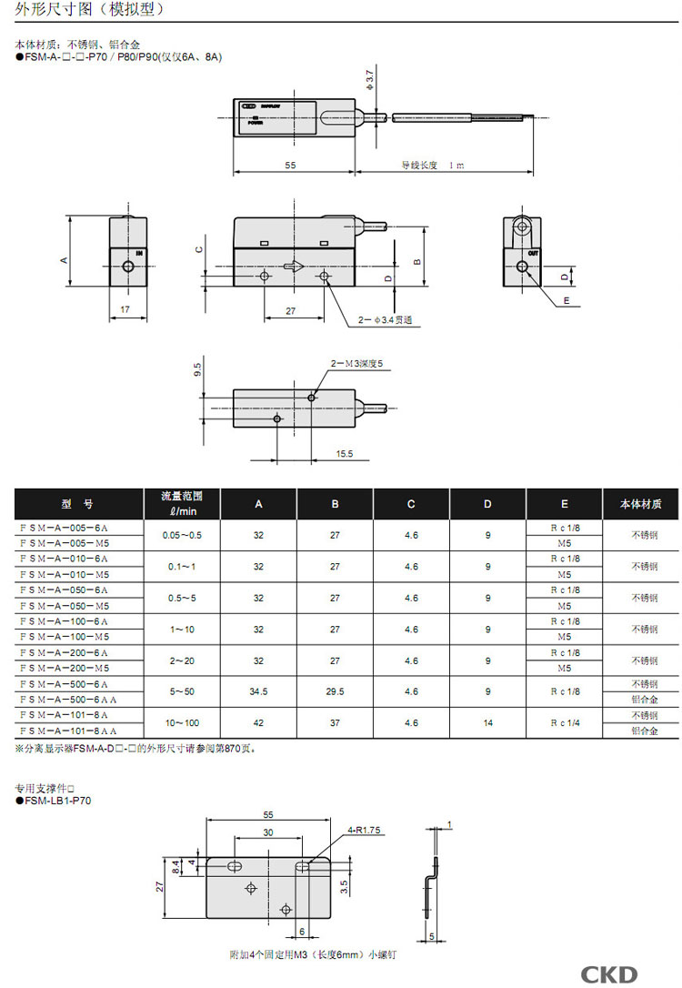 詳細(xì)信息 FSM-N-005,FSM-P-005,FSM-A-005,FSM-N-010,FSM-P-010,FSM-A-010,FSM-N-050,CKD流量傳感器
