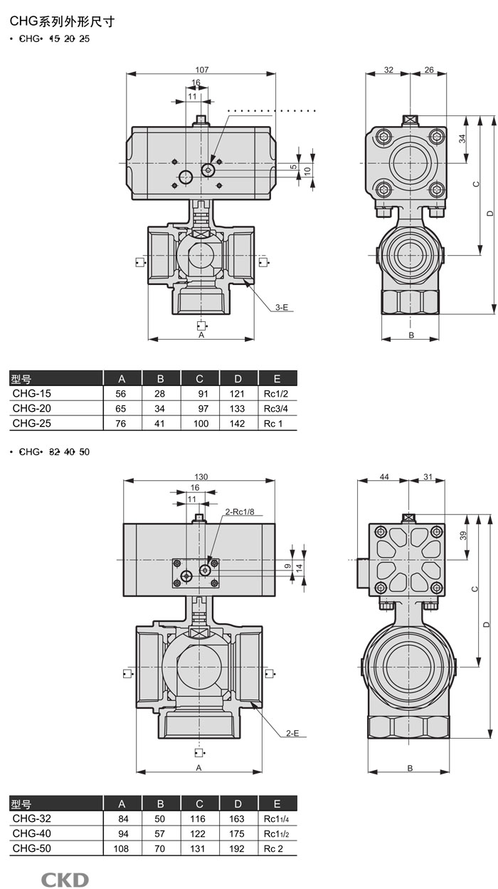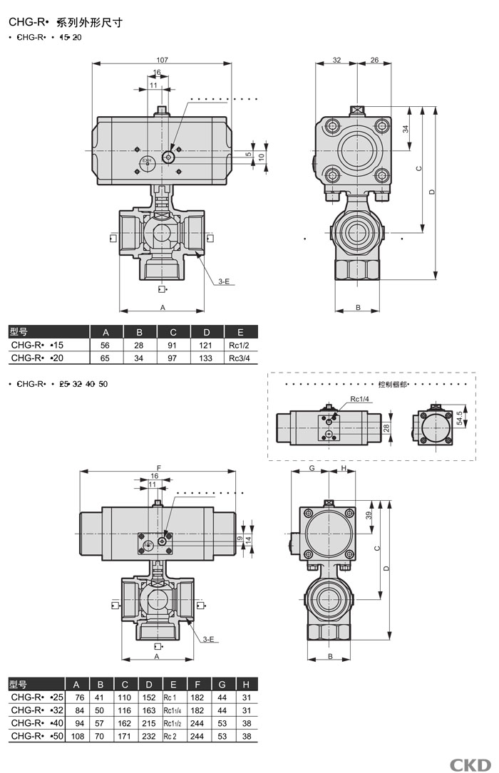 CHG-R1-15-E,CHG-R1-20-E,CHG-R1-25-E,CHG-R1-32-E,CHG-R1-40-E,CHG-R1-50-E,CKD氣動(dòng)式球閥3通閥
