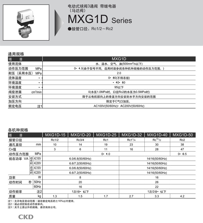 詳細(xì)信息 MXG1D-15,MXG1D-20,MXG1D-25,MXG1D-32,MXG1D-40,MXG1D-50,CKD電動式球閥3通閥