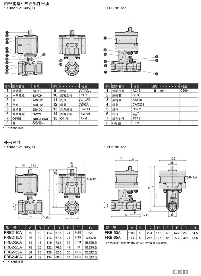FRB2-10A,FRB2-15A,FRB2-20A,FRB2-25A,FRB2-32A,FRB2-40A,FRB-50A,FRB-65A,CKD氣動(dòng)式球閥2通閥
