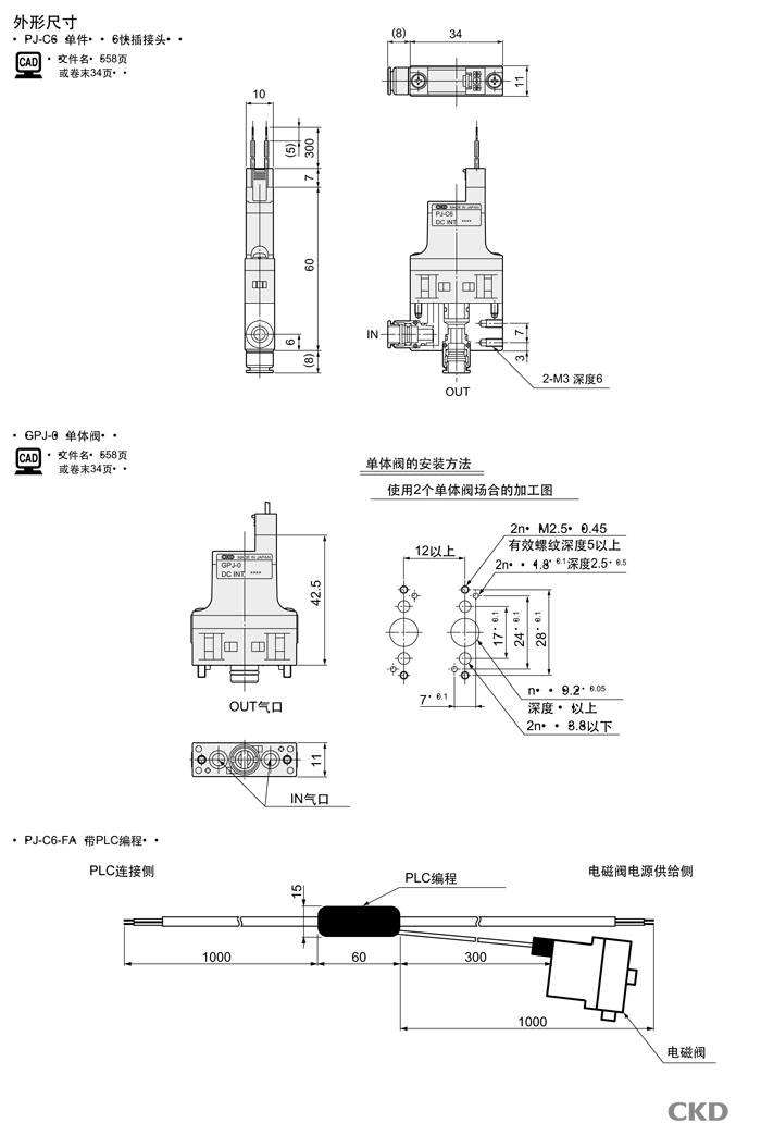 PJ-C6-FA,PJ-C6,GPJ-0,CKD直動(dòng)式2通電磁閥