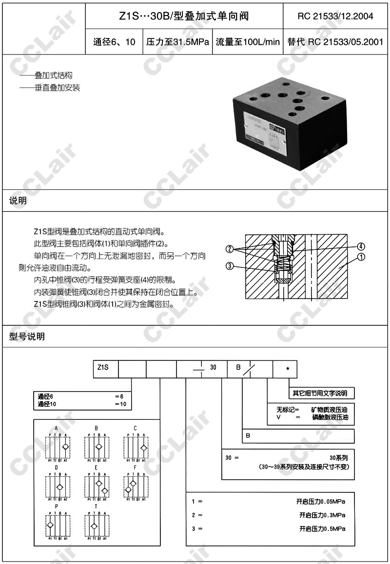 Z1S6,Z1S10,Z1S10T3-30,Z1S10E3-30,Z1S6C2-30,Z1S6F2-30,Z1S6F1-30,huade疊加式單向閥