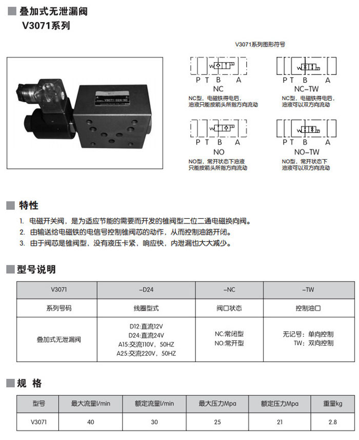 V3071-D24,V3071-D12,V3071-A15,V3071-A25,V3071-D24-NC-TW,V3071-A15-NO,疊加式無(wú)泄漏閥