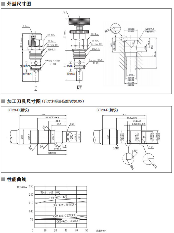 CMR-092-J10N,CMR-092-J20N,CMR-092-J40N,CMR-092-KW10N,CMR-092-KW20N,CMR-092-KW40N,螺紋插裝式直動(dòng)式溢流閥