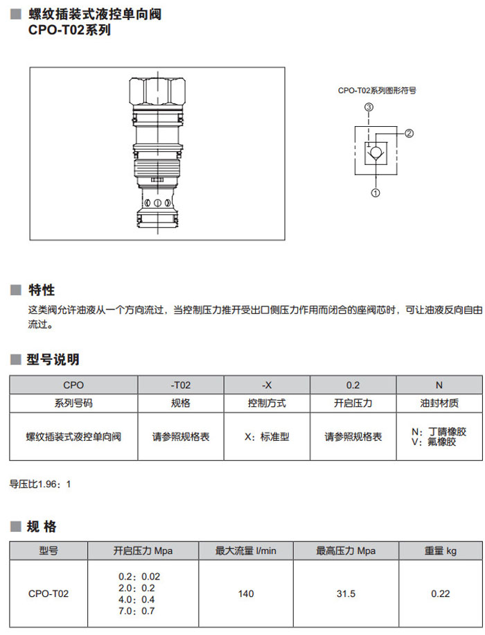 CPO-T02-X0.2N,CPO-T02-X2.0N,CPO-T02-X4.0N,CPO-T02-X7.0N,CPO-T02-X0.2V,螺紋插裝式液控單向閥 詳細信息 CPO-T02-X0.2N,CPO-T02-X2.0N,CPO-T02-X4.0N,CPO-T02-X7.0N,CPO-T02-X0.2V,螺紋插裝式液控單向閥
