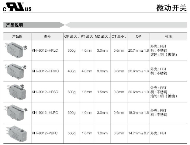 KH-9012-5,KH-9012,KH-9012-5PBC,KH-9012-5HLC,KH-9012-HLC,KH-9012-HRLC,KH-9012-HRMC,Koino微動開關(guān)