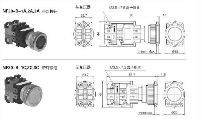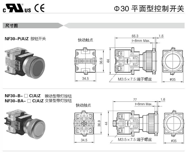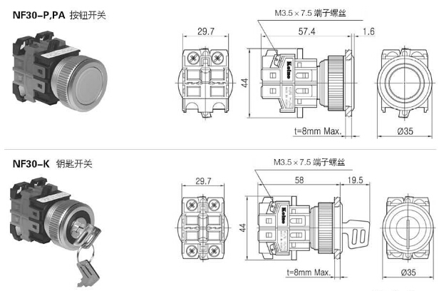 詳細信息 NF30-S2S,NF30-BM,NF30-K3K,NF30-SA2L,NF30-PM,NF30-S3L,NF30-K3RK,NF30-S3S,Koino Φ30平面型控制開關