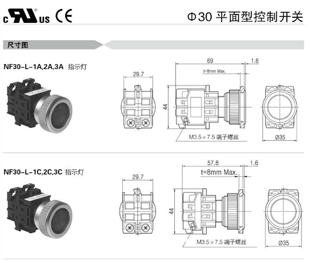 NF30-S2S,NF30-BM,NF30-K3K,NF30-SA2L,NF30-PM,NF30-S3L,NF30-K3RK,NF30-S3S,Koino Φ30平面型控制開關