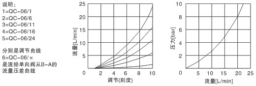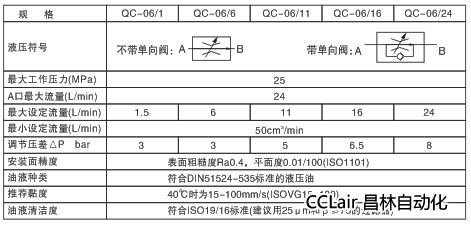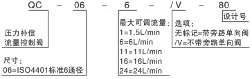 QC-06型流量閥是帶有壓力補(bǔ)償①的流量控制閥,既通常所說(shuō)的調(diào)速閥,流量受壓力變化的影響較小。